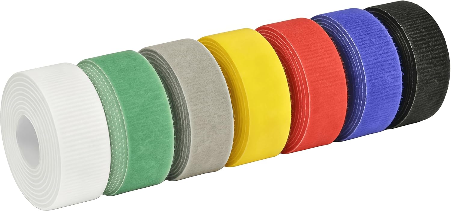 Nylon Hook and Loop Tape - Multi-Purpose Trimmable Fastening Solution Our Nylon Hook and Loop Tape is a revolutionary fastening solution, offering an incredibly convenient bonding experience. No glue or adhesives are neededβsimply press the Hook and Loop sides together for a secure, strong hold with excellent peel strength, yet they can be easily separated and reused thousands of times. Crafted from high-quality nylon material, this tape is soft yet durable, maintaining excellent performance through repeated open-close cycles. πMultiple Colors for Organization & Decoration: Available in 7 vibrant colors (Red, Yellow, Blue, White, Gray, Black, Green) to meet all your categorization and decorative needs. Green tape is ideal for garden tying and fastening; red adds festive cheer to Christmas trees; multiple colors are perfect for cable management, helping to distinguish between different electronic cords. βοΈ Customizable Length, Endless Applications: Each roll is 0.4 inches wide (1 cm) and 8/16/32 feet long (2.5/5/10 meters). You can easily trim it to any desired length and shape for specific projects. Whether for organizing small items or large-scale industrial applications, it adapts perfectly. π The Ideal Cable Management Solution: This product is the perfect Cable Organizer and Cord Ties for Electronics. It gently bundles wires and cables, preventing tangles without damaging the surface like traditional Zip Ties or Zip Tape might. Perfect for organizing computer cables in a home office or complex wiring in industrial settings. πΏ Wide Applicability, Eco-Friendly & Durable: From home organization and industrial fastening to creative DIY, its uses are limitless. These Reusable Cable Ties are an economical and eco-conscious choice, reducing waste by being used multiple times. The nylon material is moisture-resistant and highly durable, making it a smart alternative to single-use fasteners. π¦ Great Value Pack Options: We offer 7-pack option to suit different usage scenarios and volumes. Find the perfect size for your needs, whether for occasional household use or large professional projects. Choose our Nylon Hook and Loop Tape for an efficient, flexible, and reliable organizing and fastening solution!