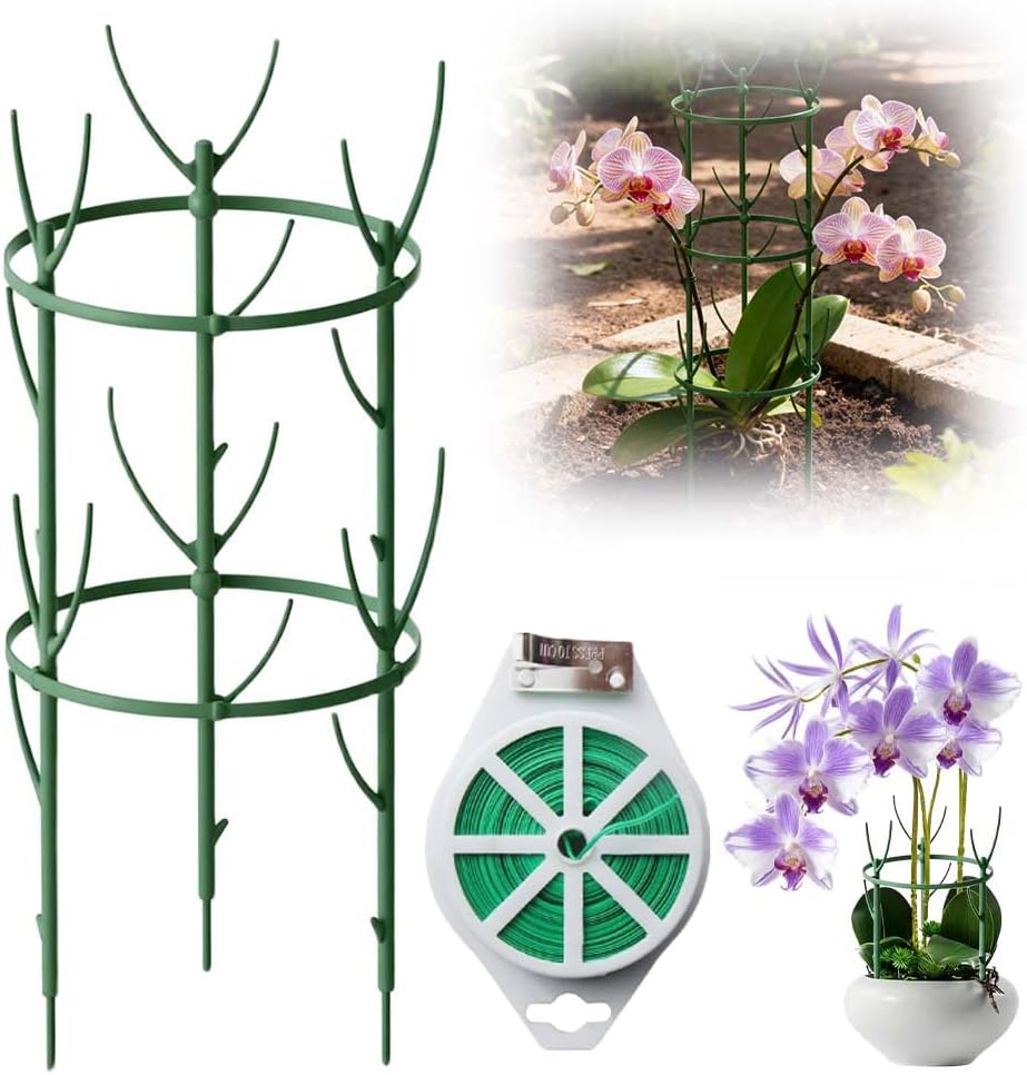 Specification: Material: Plastic Color: Green Size: As shown Package Included: (Optional) 1/2/3 Set X Plant Support OR 1/2/3 Set X Plant Support +65 feet strand NOTE 1.Please allow slight dimens error due to manual measurement.Thank you for your understanding! 2.Due to different monitors and different lighting, the picture may not show the actual color of the item.